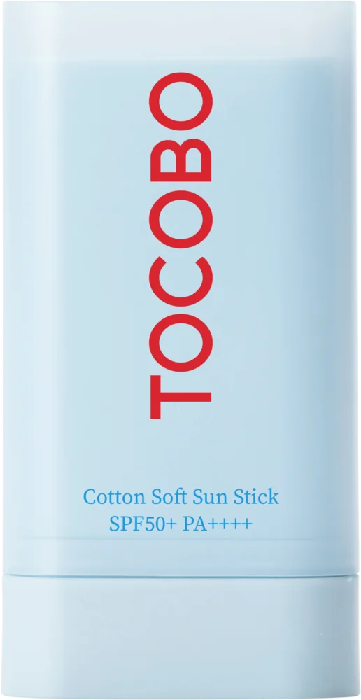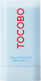 Ce stick solaire de Tocobo à la texture douce contient de l'extrait de coton et de l'aloe vera pour une protection SPF50 PA++++ qui matifie la peau.