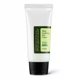 Cette crème solaire de COSRX contient des filtres chimiques et de l'aloe vera pour protéger la peau des UV tout en l'apaisant.