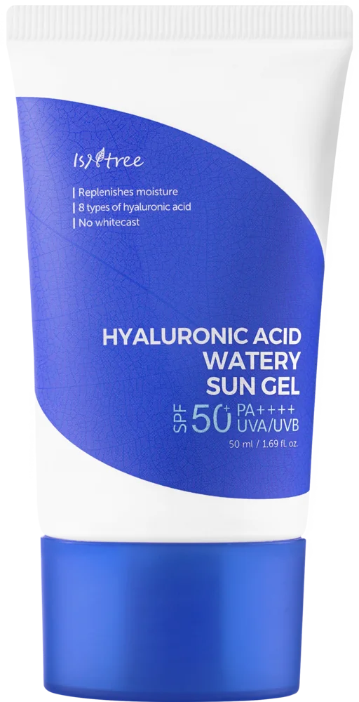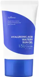 Ce gel solaire de Isntree contient de l'acide hyaluronique, de la niacinamide et des filtres chimiques pour une protection UV légère et une hydratation en profondeur.
