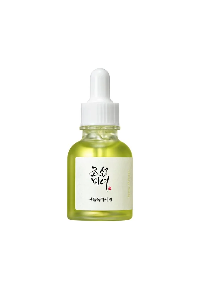 Ce sérum de Beauty of Joseon contient de l'eau de thé vert, du panthénol, de la niacinamide et de l'acide hyaluronique pour apaiser, hydrater et protéger la peau.