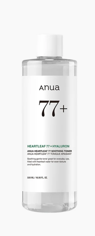 Le toner Anua contient de l'extrait de Houttuynia Cordata (77%), du panthénol et de la bétaïne pour leurs effets apaisants, hydratants et protecteurs de la barrière cutanée.