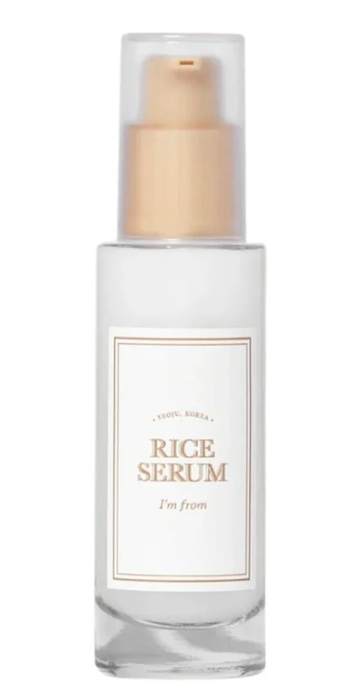 Ce sérum de I'm from contient du ferment de germe de riz, de la niacinamide et des céramides pour illuminer le teint et renforcer la barrière cutanée.