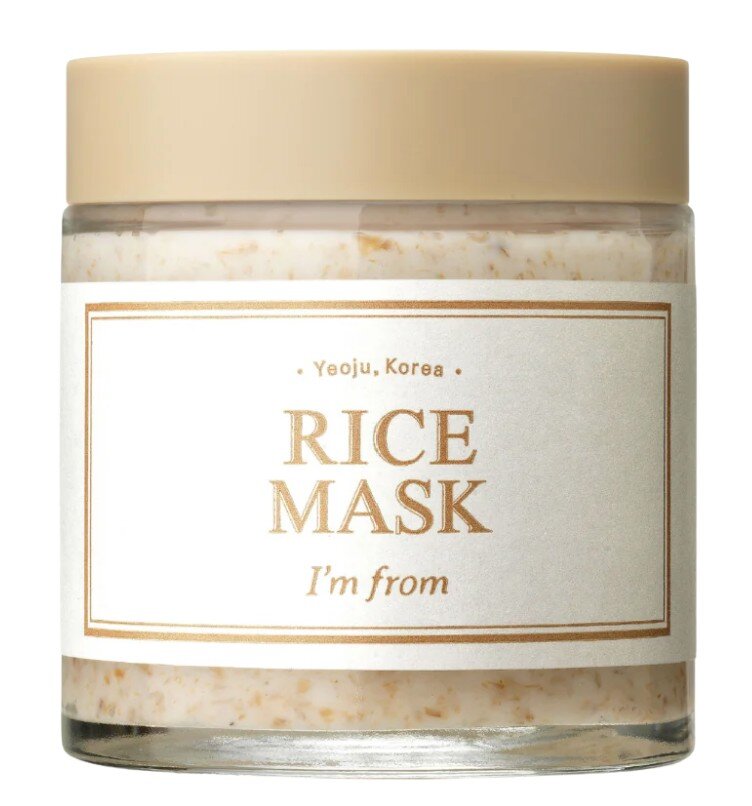 Ce masque de I'm from contient de la poudre de riz et de la niacinamide pour exfolier en douceur et illuminer le teint.