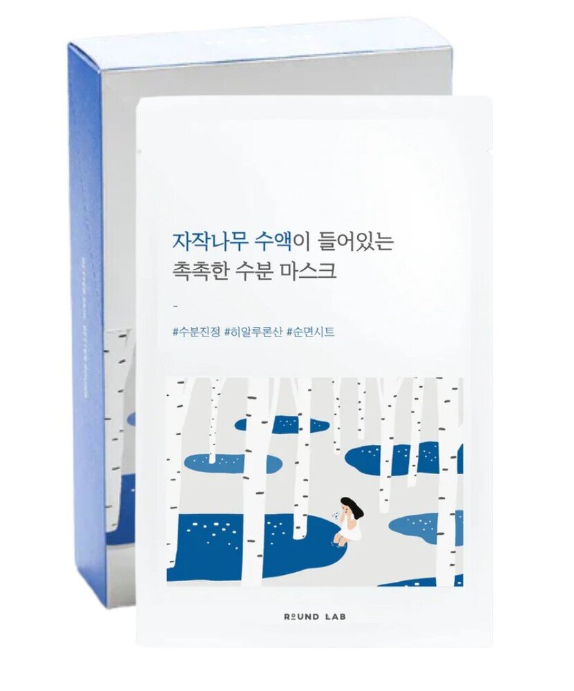Ce masque de Round Lab à la sève de bouleau contient de la niacinamide et de l'acide hyaluronique pour hydrater en profondeur et apaiser les peaux sensibles.