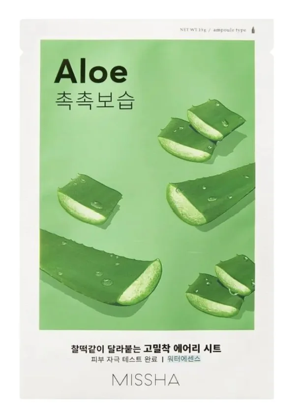 Ce masque en tissu de Missha est infusé d'aloe vera pour apaiser et hydrater la peau, la laissant fraîche et confortable.