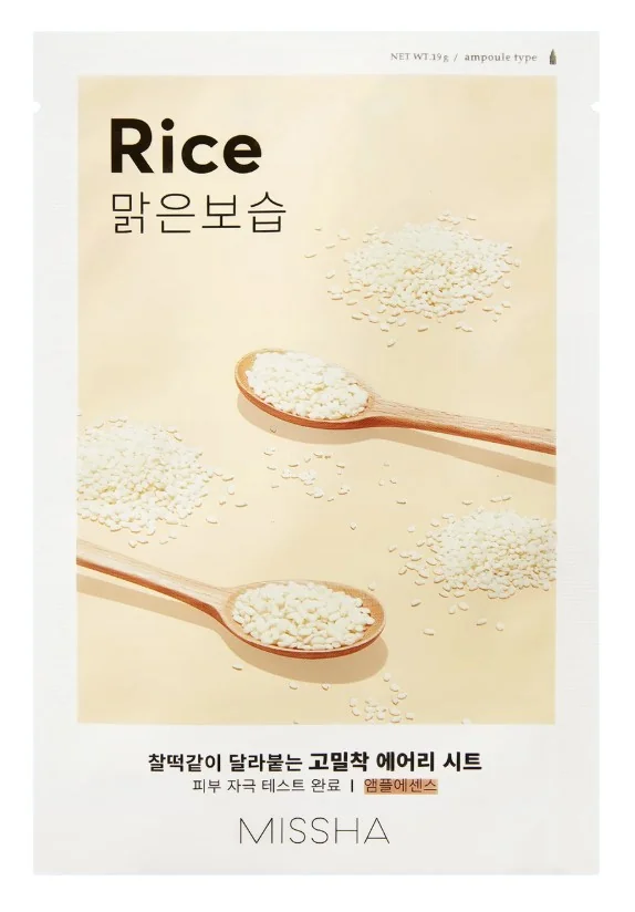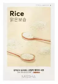 Ce masque en tissu de Missha est infusé d'extraits de riz, de niacinamide et d'acide hyaluronique pour illuminer et hydrater le teint.