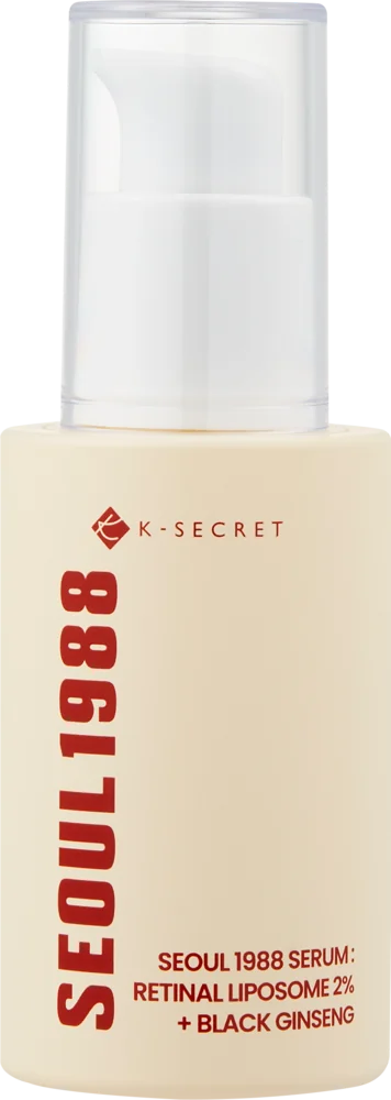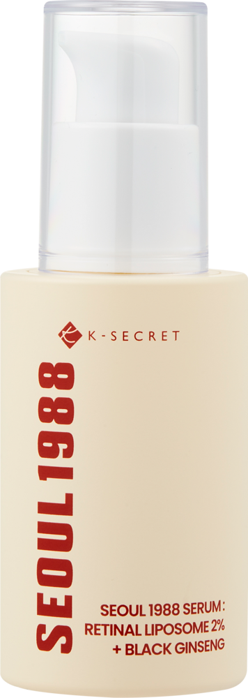Ce sérum de K-Secret combine du rétinol (rétinal liposomal) et du ginseng noir pour cibler les ridules et améliorer l'élasticité de la peau.