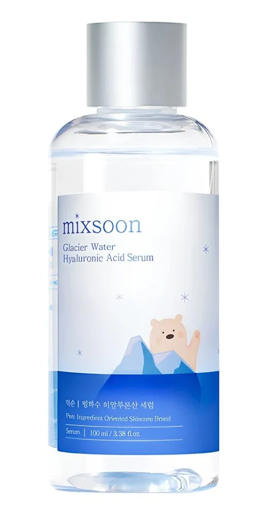Ce sérum de Mixsoon contient de l'eau des glaciers et de l'acide hyaluronique pour hydrater intensément la peau.